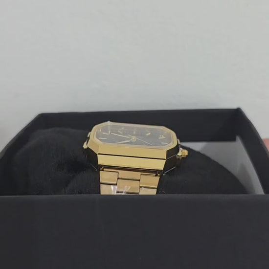 Relógio Masculino Dourado Quadrado (Retangular) - Mostrador Preto e Data